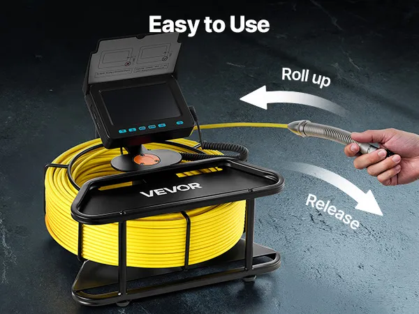 Veelzijdige toepassingen: De robuuste metalen kabelhaspel maakt het mogelijk om kabels gemakkelijk op te bergen en te vervoeren. Dit maakt dit loodgietersgereedschap ideaal voor buitenwerkzaamheden, zoals het inspecteren van zwembadleidingen en rioleringssystemen, het onderhouden van verwarmings-, ventilatie- en airconditioningssystemen, enz. Compatibele buisdiameters: Rechte buizen Ø 50–150 mm; Bochtbuizen Ø 50–150 mm