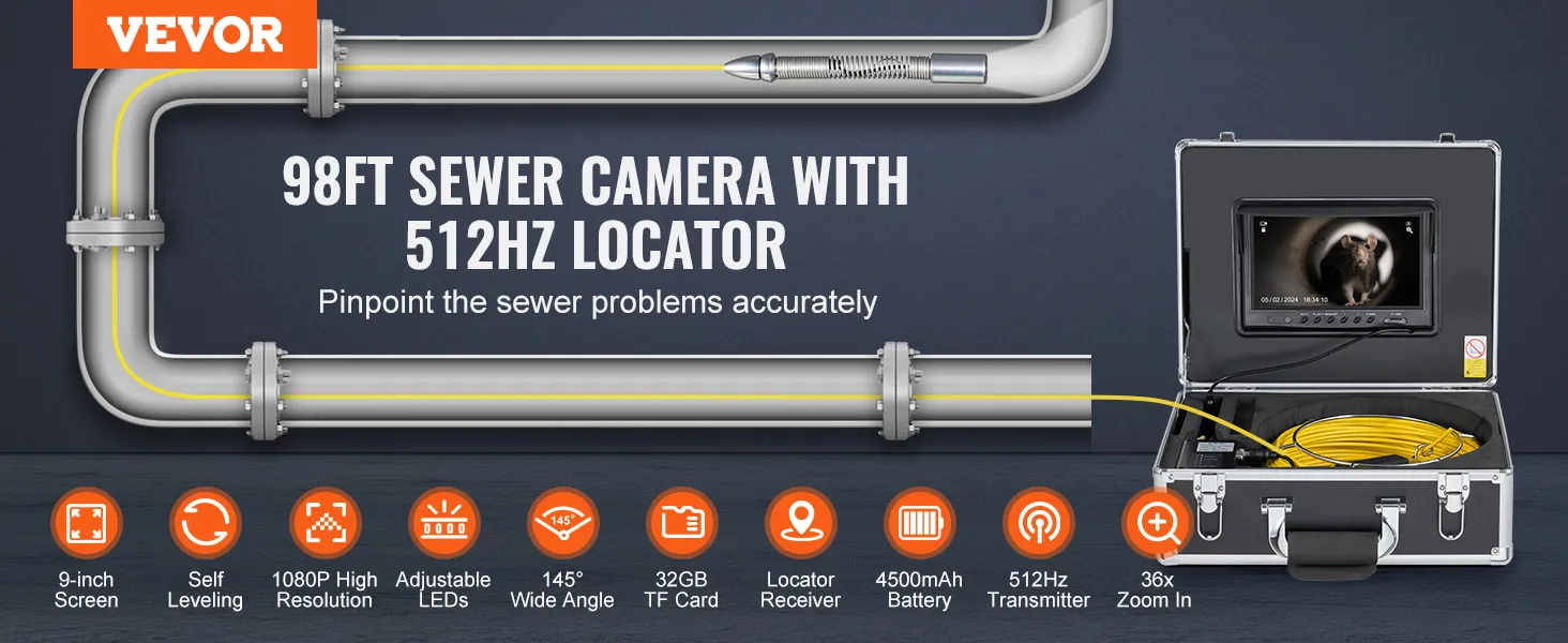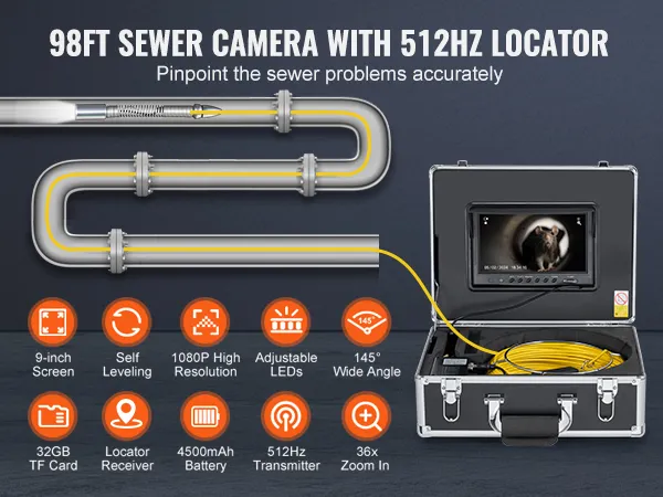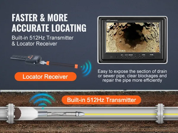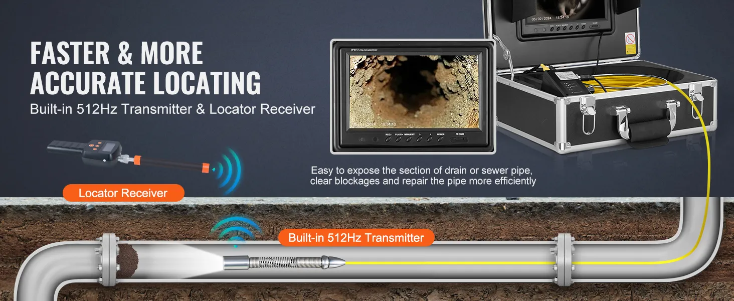 Nauwkeurige lokalisatie: Met de ingebouwde 512 Hz leidingzoekontvanger en geïntegreerde zender lokaliseert de VEVOR 30 m rioolcamera nauwkeurig de rioolproblemen en verbetert de inspectie-efficiëntie zonder dat extra aankopen nodig zijn. De gemarkeerde kabel (met intervallen van 0,9 m) laat zien hoeveel kabel er in de leiding is gestoken, waardoor leidinginspecties en het opsporen van verstoppingen efficiënter worden.