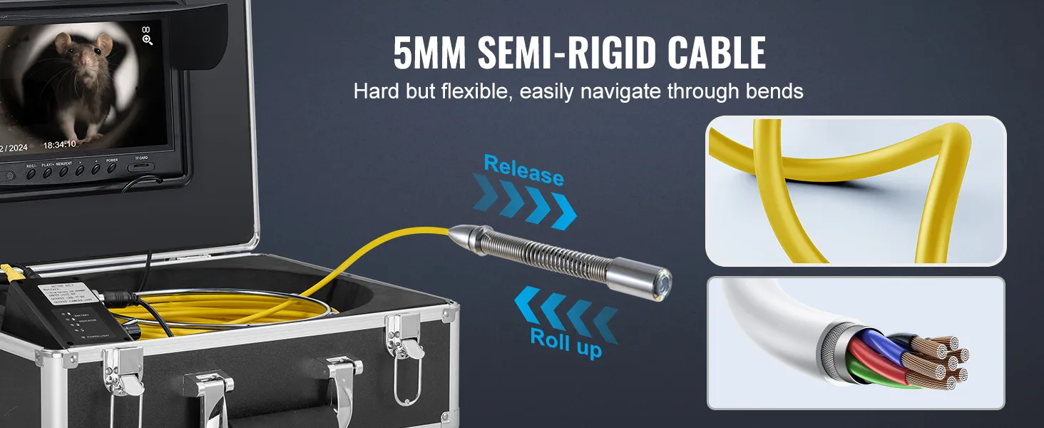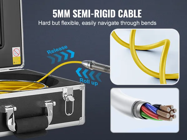 De 5 mm dikke semi-stijve slangkabel van VEVOR biedt een grotere duurzaamheid en een soepelere werking, waardoor u gemakkelijk door bochten kunt navigeren en inspecties efficiënter kunt maken.