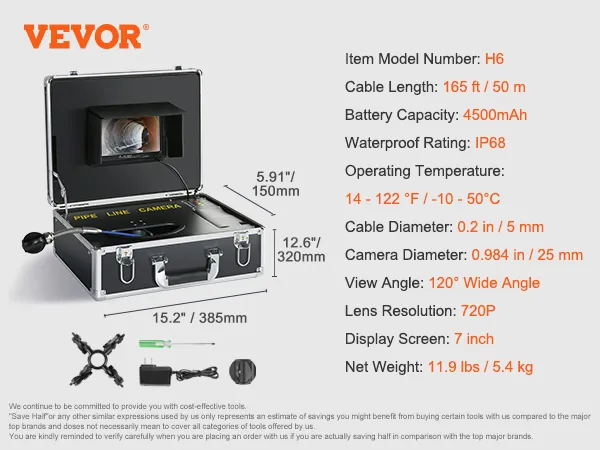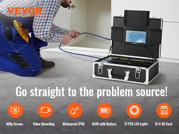 Onze hoogwaardige 7" 1000 TVL rioolinspectiecamera biedt u een visuele referentie over de staat van leidingen. Hierdoor kunt u elke kamer in eigen handen nemen en met VEVOR een oplossing vinden!
