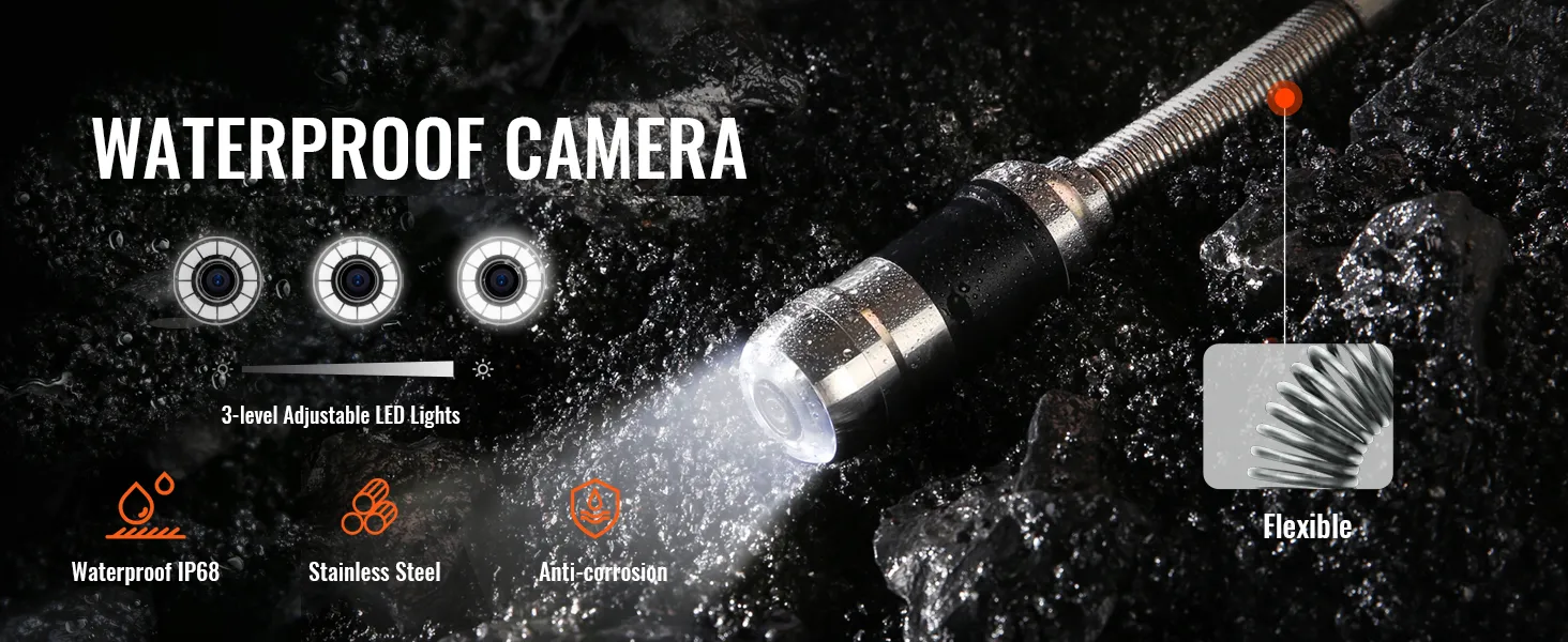 Breed scala aan toepassingen: de professionele snake-camera en semi-stijve kabel van VEVOR zijn ondergebracht in een compacte en duurzame aluminium behuizing die uitstekende bescherming biedt en tegelijkertijd gemakkelijk te dragen is. Deze rioolcamera is perfect voor loodgieters, aannemers, inspecteurs, ingenieurs en gemeentewerkers en is de ultieme keuze voor nauwkeurige inspecties in rioleringen, rioleringen, afvoerleidingen, HVAC-onderhoud, schoorstenen en meer.