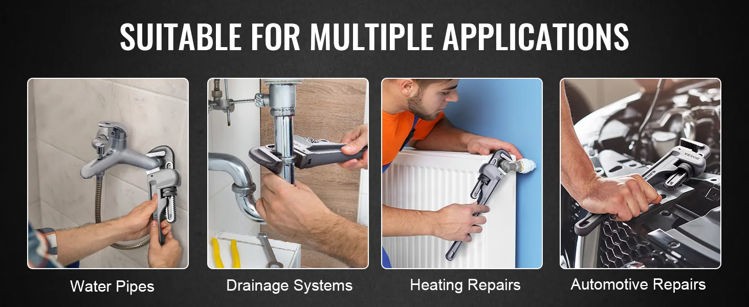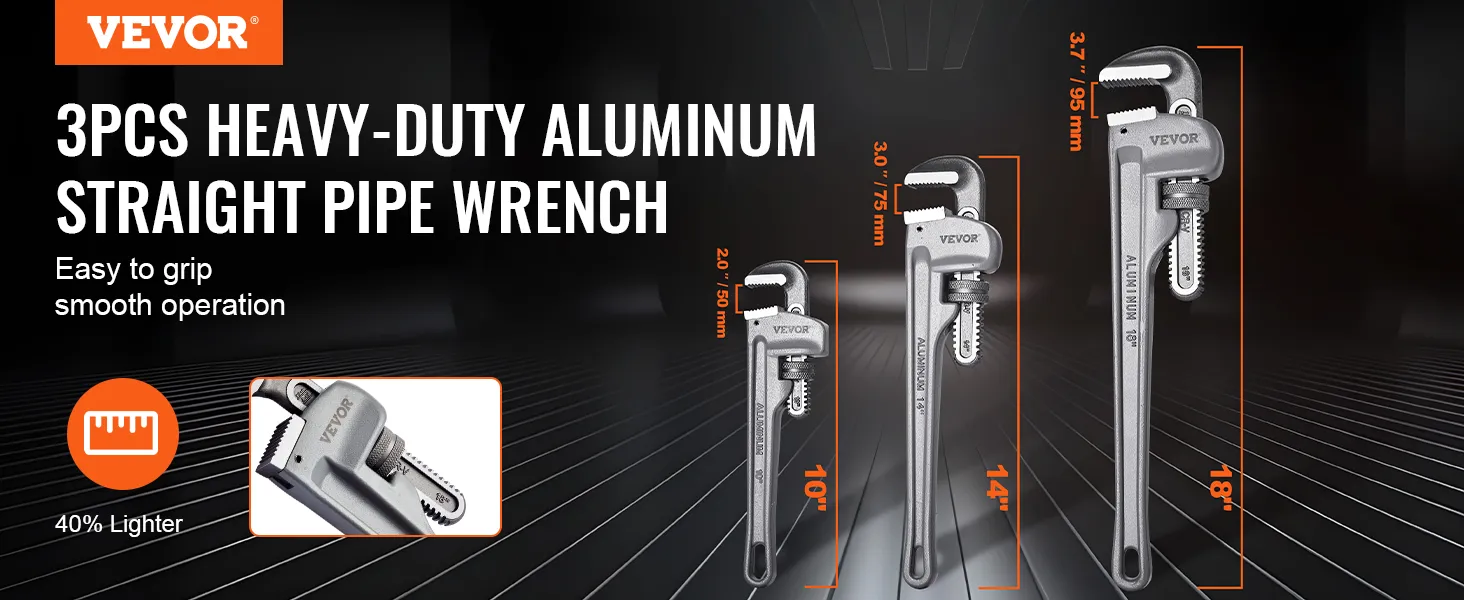 Handle High-Intensity Tasks with VEVOR Heavy-Duty Straight Pipe Wrench Set!