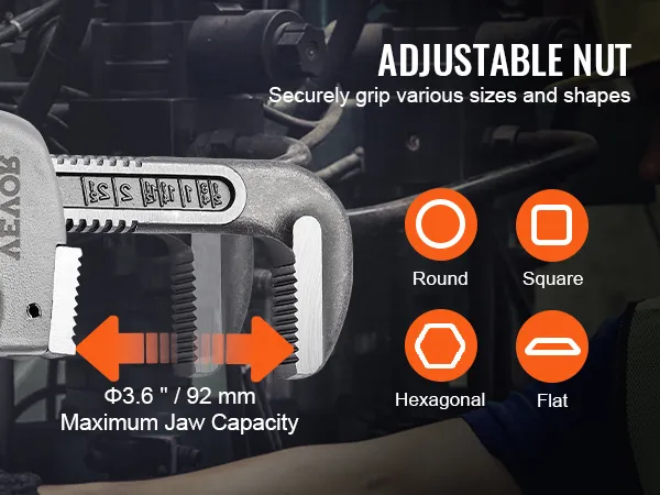 Easy Adjustment: The Non-slip knurled nut of the straight pipe wrench ensures smooth adjustments without slipping during single-handed operation. You can rotate the nut to adjust jaw size for various part dimensions. Self-cleaning thread design reduces contamination and wear, extending usability.