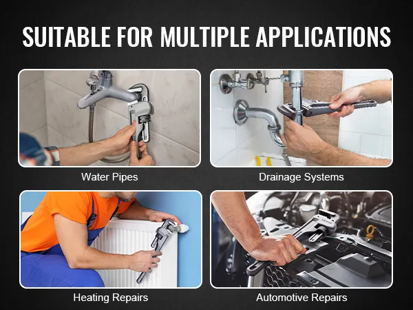 Ideal for tasks requiring fastening, loosening, or adjusting threaded connections, our plumbing wrench is suitable for mechanical manufacturing, automotive repairs, construction projects, plumbing, and more.
