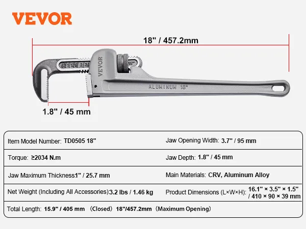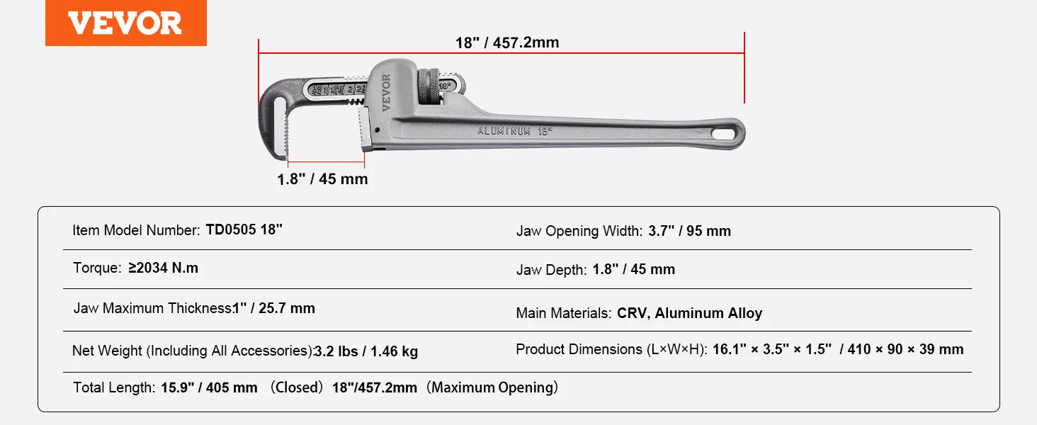 Handle High-Intensity Tasks with VEVOR 18" Heavy-Duty Straight Pipe Wrench!