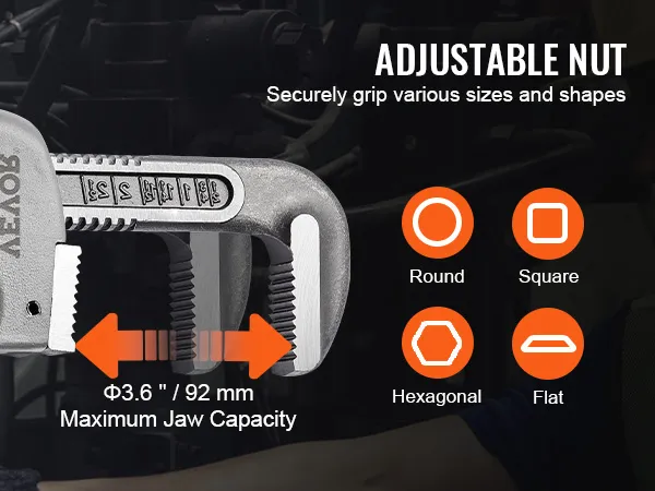 Easy Adjustment: The Non-slip knurled nut of the straight pipe wrench ensures smooth adjustments without slipping during single-handed operation. You can rotate the nut to adjust jaw size for various part dimensions. Self-cleaning thread design reduces contamination and wear, extending usability.
