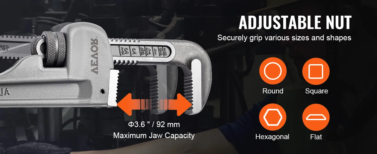 Ergonomic Design: H-shaped handle design of the aluminum straight pipe wrench provides excellent weight distribution for easier handling and increased torque, allowing you to work more efficiently without excessive fatigue.