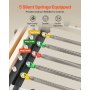 Premium veren: dankzij het hoogwaardige verenstaal biedt dit Pilates-apparaat voor thuisgebruik 5 weerstandsniveaus voor de veren, ideaal voor het trainen van uw bovenlichaam, onderlichaam en kernmusculatuur. De set bevat 1 sterke veer (rood), 3 middelzware veren (groen) en 1 lichte veer (geel)