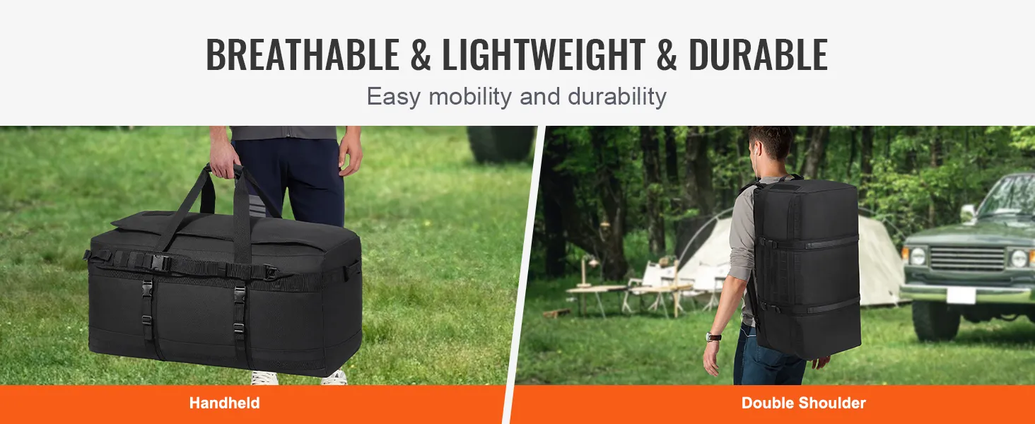 This duffle bag effortlessly transforms into a carry-on bag, crossbody bag, shoulder bag, hand-held bag, sports bag, or gym bag, providing ultimate flexibility for travel, vacations, and camping needs.