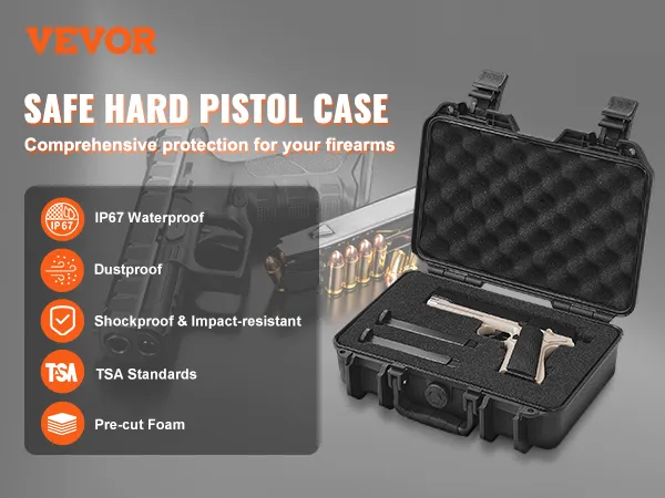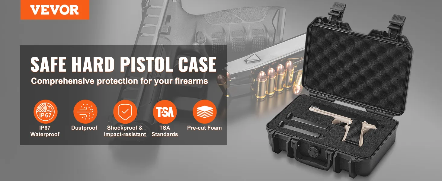 Our hard pistol case features a robust IP67 waterproof and dustproof rating, approved by TSA for travel on airplanes, trains, and other public transport, providing a perfect storage and travel solution for firearms.