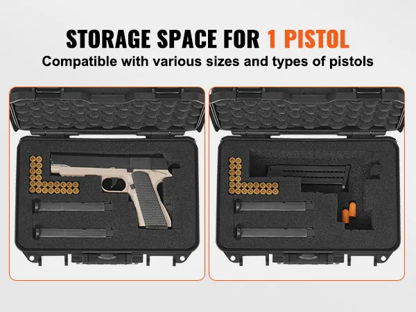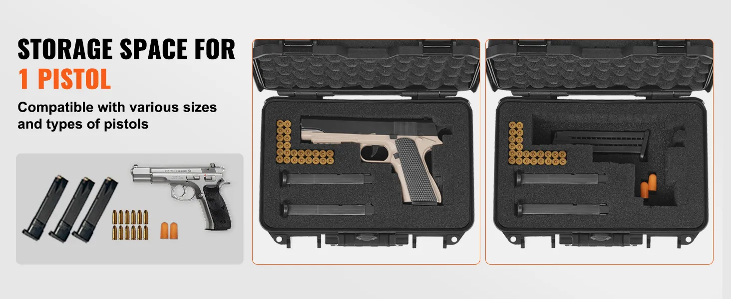 The pistol case accommodates 1 pistol, suitable for most handguns. Its compact internal structure saves valuable space while ensuring your firearm remains in its original condition, making it easier and more convenient to carry and use.