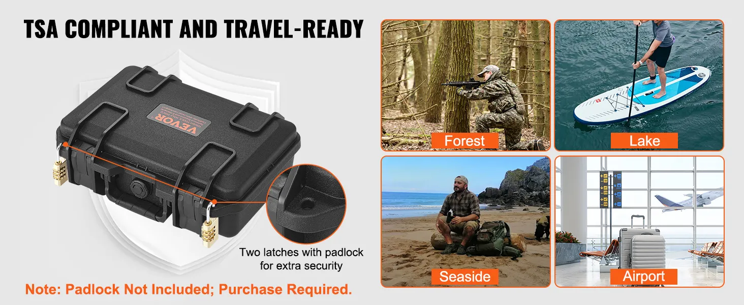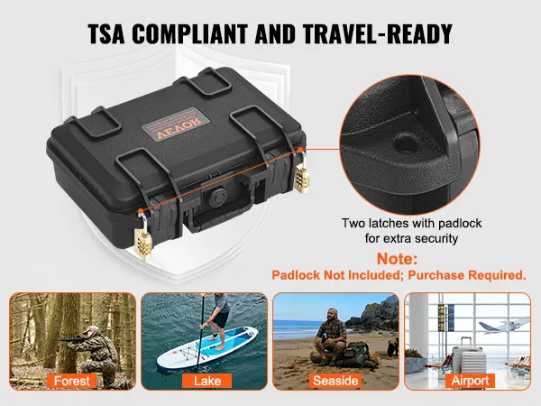 TSA Approved: This portable pistol case has undergone rigorous testing and is TSA approved, allowing you to carry it on airplanes, trains, and other public transportation. It includes a pressure release valve, two padlock holes, and unidirectional hinge pins, enabling you to add padlocks for enhanced security.