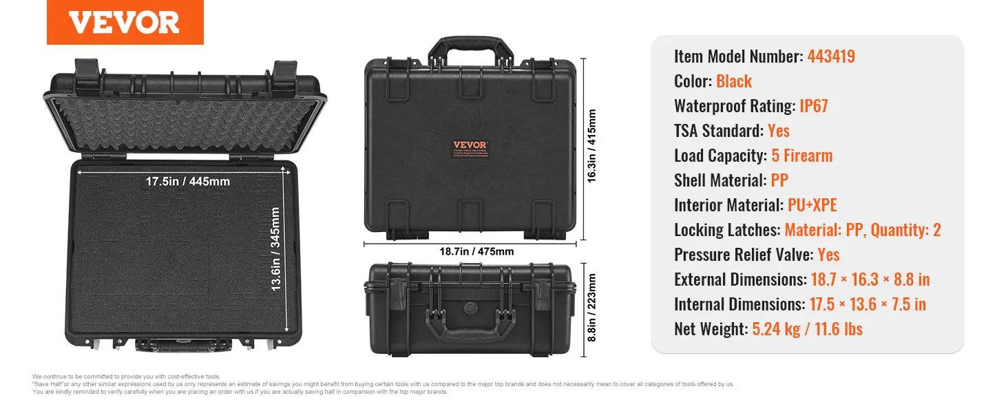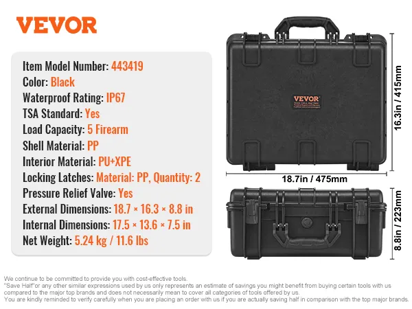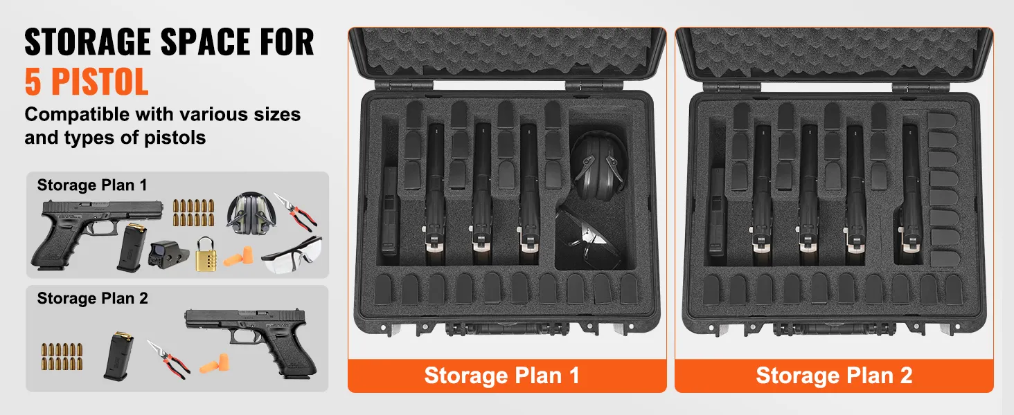 VEVOR Hard Pistol Cases with Pre-cut Lining, Waterproof & Dustproof Hard Gun Case for 5 Pistol, 18.9×16.3×8.5 in Lockable Pistol Case, Black VEVOR Hard Pistol Cases with Pre-cut Lining, Waterproof & Dustproof Hard Gun Case for 5 Pistol, 18.9×16.3×8.5 in Lockable Pistol Case, Black