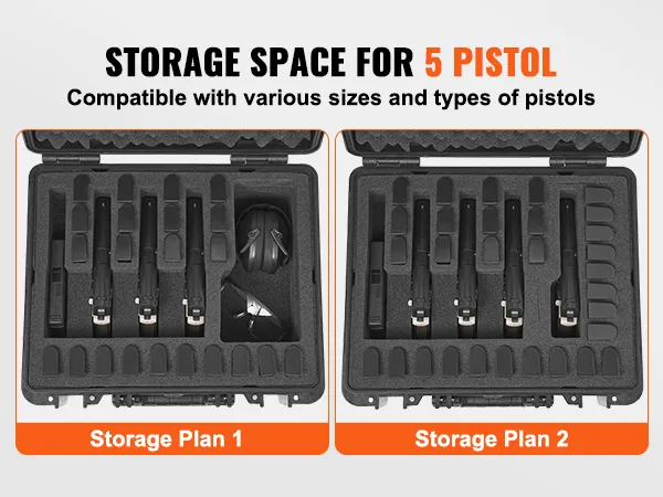 The pistol case accommodates 5 pistol, suitable for most handguns. Its compact internal structure saves valuable space while ensuring your firearm remains in its original condition, making it easier and more convenient to carry and use.