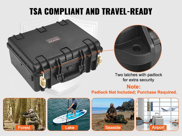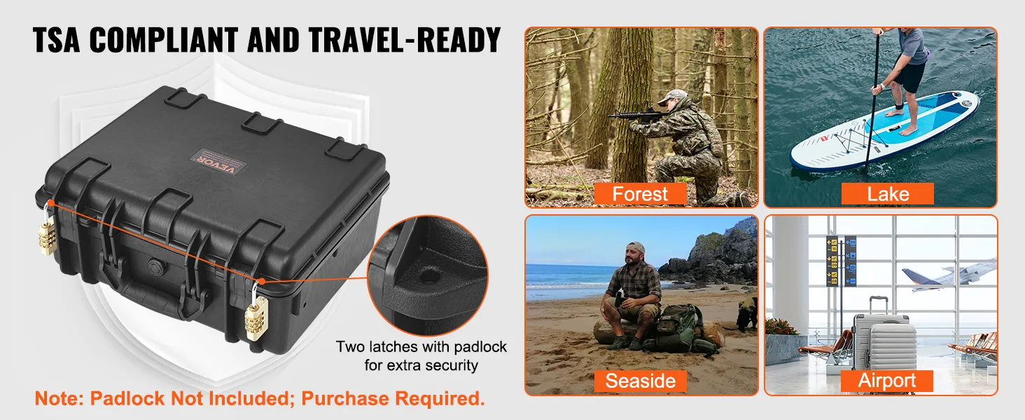 • TSA Approved: This portable pistol case has undergone rigorous testing and is TSA approved, allowing you to carry it on airplanes, trains, and other public transportation. It includes a pressure release valve, two padlock holes, and unidirectional hinge pins, enabling you to add padlocks for enhanced security.