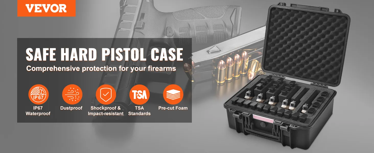 Our hard pistol case features a robust IP70 waterproof and dustproof rating, approved by TSA for travel on airplanes, trains, and other public transport, providing a perfect storage and travel solution for firearms.