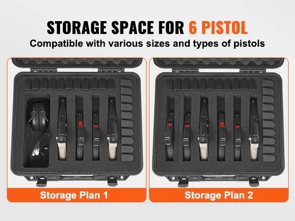 The pistol case accommodates 6 pistol, suitable for most handguns. Its compact internal structure saves valuable space while ensuring your firearm remains in its original condition, making it easier and more convenient to carry and use.