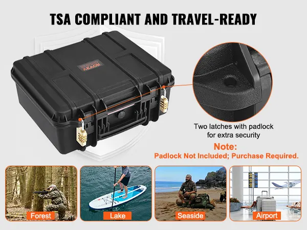 TSA Approved: This portable pistol case has undergone rigorous testing and is TSA approved, allowing you to carry it on airplanes, trains, and other public transportation. It includes a pressure release valve, two padlock holes, and unidirectional hinge pins, enabling you to add padlocks for enhanced security.