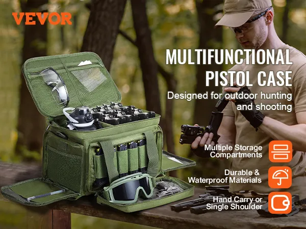 【High-Quality Materials】Made from durable 600D polyester, the range bags for handguns is waterproof and resistant to outdoor weather. Reinforced stitching ensures long-lasting use, and thick internal padding protects firearms from impacts during transport.