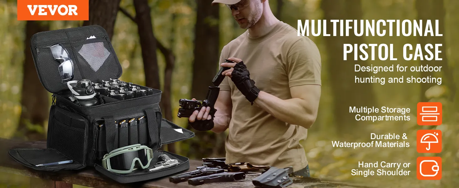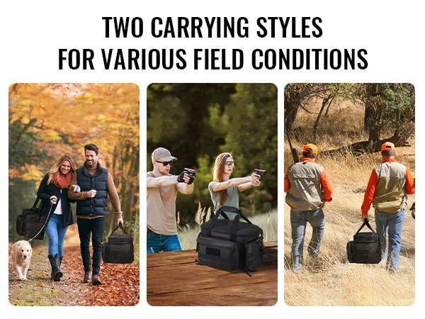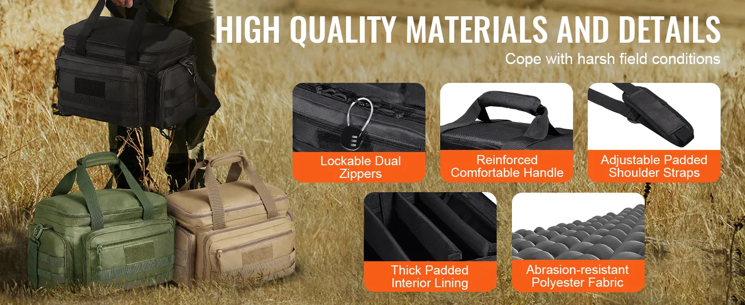 【High-Quality Materials】Made from durable 600D polyester, the range bags for handguns is waterproof and resistant to outdoor weather. Reinforced stitching ensures long-lasting use, and thick internal padding protects firearms from impacts during transport.