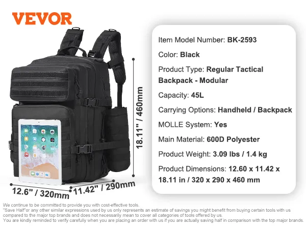 VEVOR Tactical Backpack: Versatile design for effortless travel!