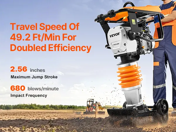 3600 lbs of Strong Impact: The powerful engine delivers up to 3600 lbs of impact force, easily compacting various soils and foundations with a compaction depth of 26 inches. This vibratory tamper ensures your projects are completed efficiently.