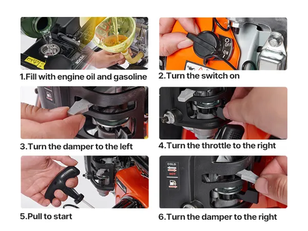 Clear Oil Levels: The oil and fuel capacities are visible, making the compactor easy to monitor and refill as needed. This helps prevent damage or efficiency loss due to low oil levels. With an oil capacity of 0.4L - 0.6L and a fuel capacity of 2.8L, it meets the demands of prolonged, high-intensity operations.