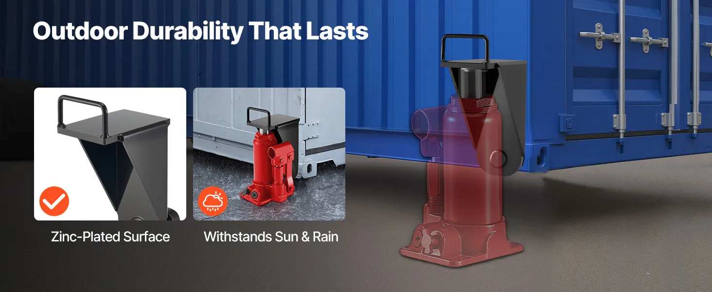 De container leveller is gemaakt van gehard staal met een roestwerende coating. Hij is bestand tegen zon, regen en buitengebruik, biedt betrouwbare prestaties en verlengt de levensduur.
