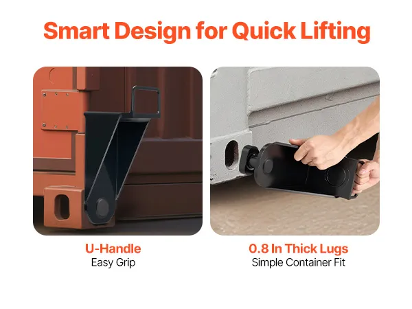 Krachtig hefvermogen: Deze containerlifter, gemaakt van robuust staal, kan tot 5600 kg dragen. Hij tilt zware containers met gemak. Elke set bevat twee lifters voor extra gemak en efficiëntie.