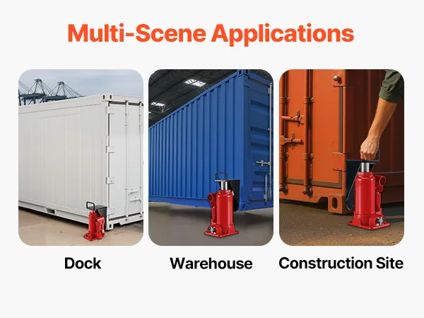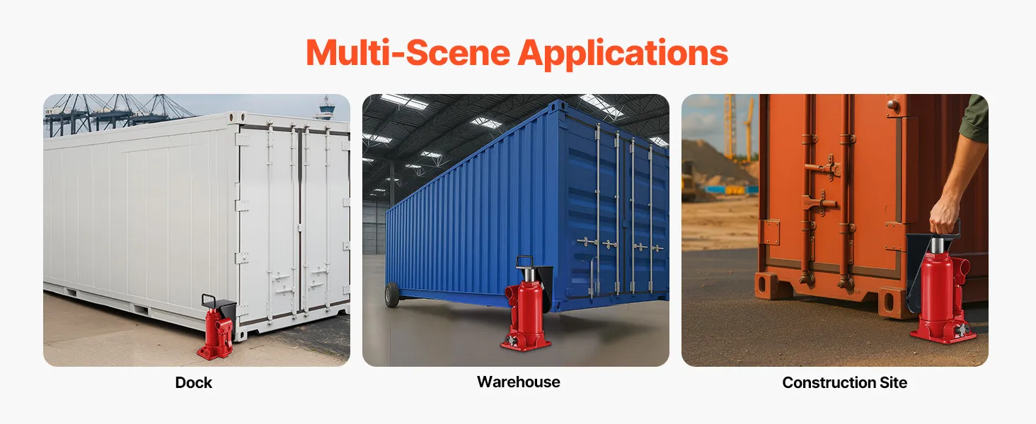Eenvoudige installatie: Deze containerkrik kan binnen enkele minuten door één persoon worden geïnstalleerd. Bevestig de adapter, draai hem 90°, positioneer de krik en til hem op. Er is geen ingewikkeld gereedschap of extra hulp nodig, wat tijd en moeite bespaart.