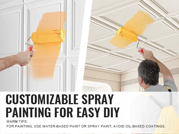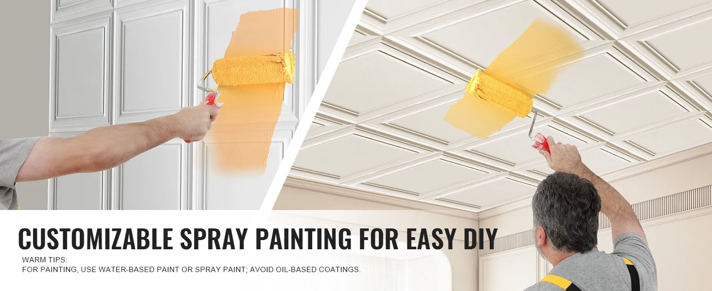 This ceiling tile is made from high-quality materials, waterproof for long-lasting durability. Easy to install, it creates an attractive ceiling effortlessly. Paintable for customization to meet your personal needs, allowing you to easily design your unique home space!