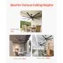 Wordt geleverd met 3 ophangstangen (6", 10", 20") voor lage, gemiddelde en hoge plafonds.