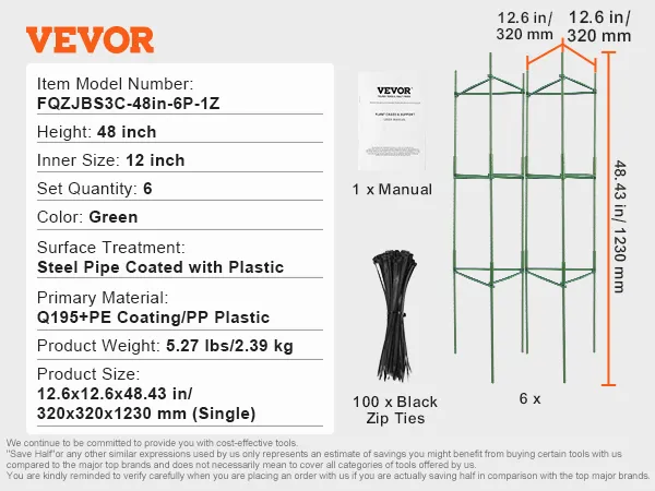 VEVOR 6-pack tomatenkooien voor de tuin, 48-inch tomatenrek voor plantensteunen, stapelbare hoge plantensteunkooi, voor verhoogde bedden, groenten, bloemen en klimplanten