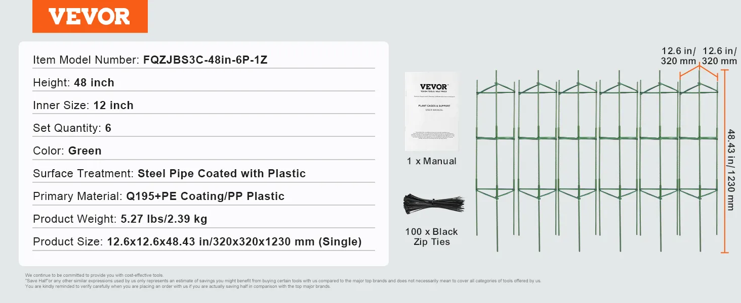 Productspecificaties: Onze tomatentoren wordt geleverd met 54 drijfstangen, 54 steunstangen, 36 verbindingsbuizen, 1 clip, 100 zwarte kabelbinders en 1 handleiding. Elk onderdeel is zorgvuldig gesmeed voor langdurig gebruik.