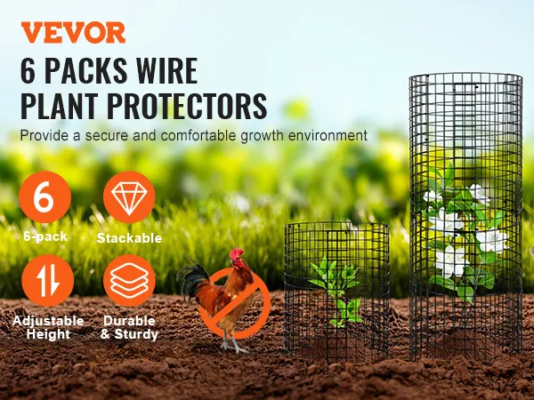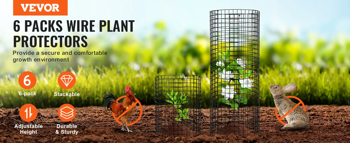 VEVOR 6-pack plantenbeschermers voor dieren, 32 cm diameter x 35 cm hoogte, plantenbeschermers van kippengaas, plantenkooien voor buitenplanten, bloemen en groenten, houdt konijnen, kippen en eekhoorns op afstand, 18-delig metalen gaas
