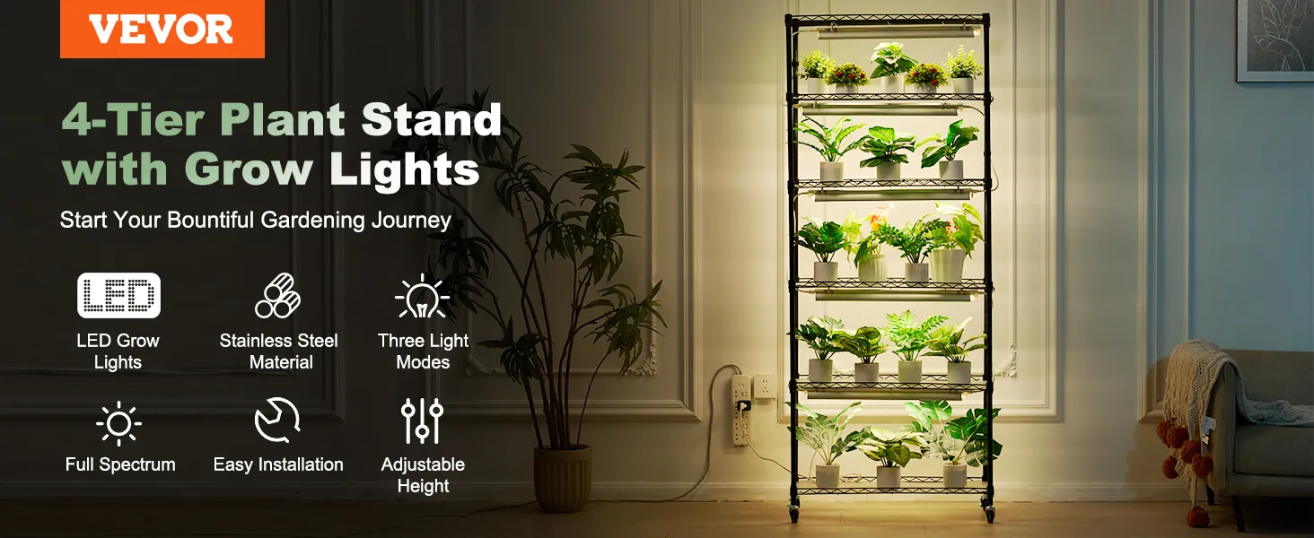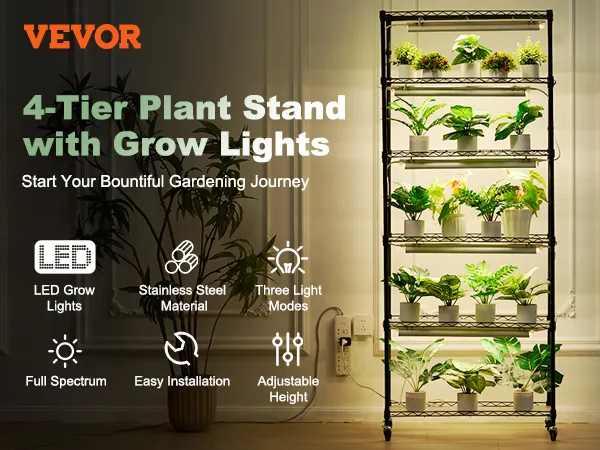 Dit plantenrek met groeilicht en doordachte details maken deze plantenstandaard eenvoudig in gebruik. De verstelbare hoogte en mobiliteitsfuncties zijn ontworpen voor uw comfort.