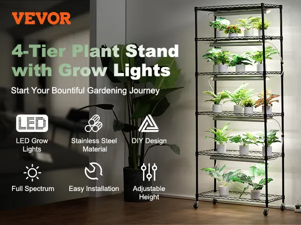 Thoughtful details make this plant rack with plant light user-friendly, with adjustable height and mobility features for easy customization.