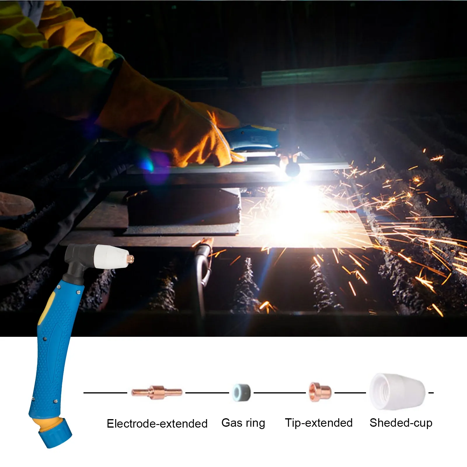 Plasmasnijtoorts: Toortslengte: 4 m. De elektrode en de punt zijn eenvoudig te vervangen. Pilot arc-technologie, je moet snijden door de punt tegen het metaal aan te raken: betere snijkwaliteit en glad snijoppervlak.