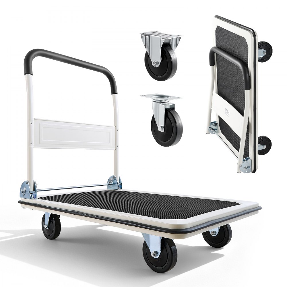 VEVOR opvouwbare platformwagen, 300 kg draagvermogen, transportwagen met zwenkwielen, handwagen met antislipcoating op het laadoppervlak, transporthulpmiddel voor eenvoudige opslag, 900x610x870 mm rolwagen
