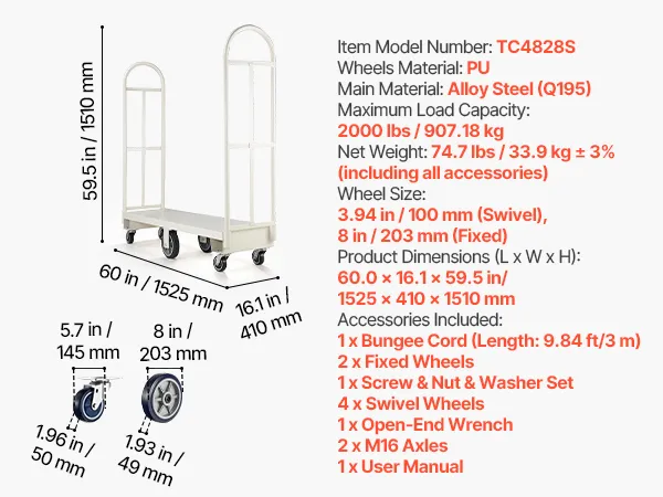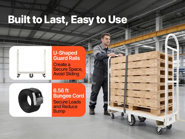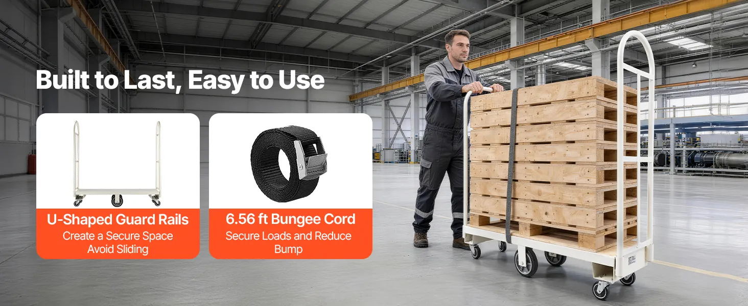 Twee handgrepen, gemakkelijk te hanteren: Deze stevige transportwagen is voorzien van twee handgrepen (3,2 cm diameter) en is ideaal voor lange of smalle voorwerpen. Pak eenvoudig de handgreep aan de gewenste kant vast zonder deze steeds te hoeven verplaatsen. Dankzij de twee handgrepen blijft de lading ook tijdens het transport stevig op zijn plaats.