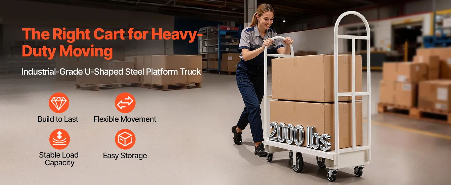 VEVOR platformwagen 907 kg, zware transportwagen, industriële magazijnwagen met 6 wielen en twee afneembare handgrepen, voor magazijnen, werkplaatsen, fabrieken, 1525x410x1510 mm rolwagen