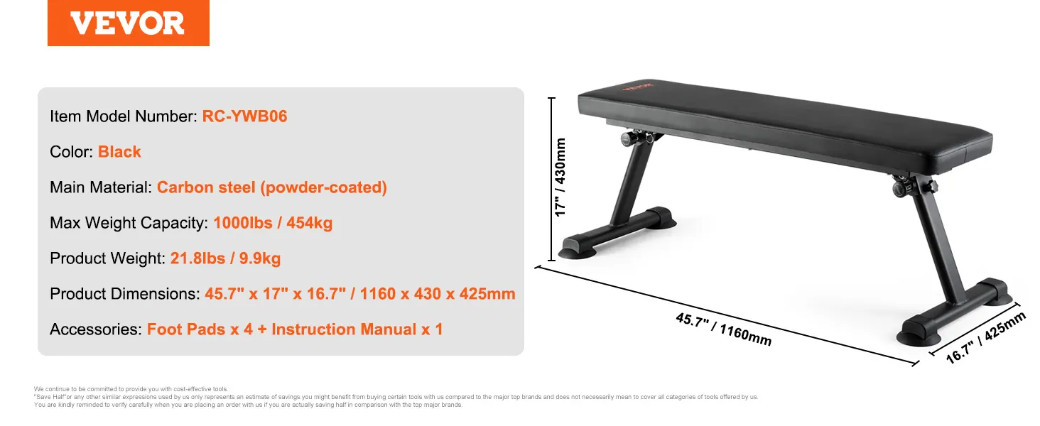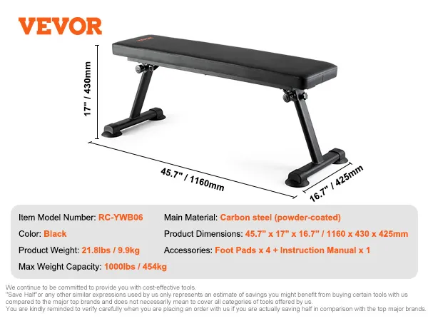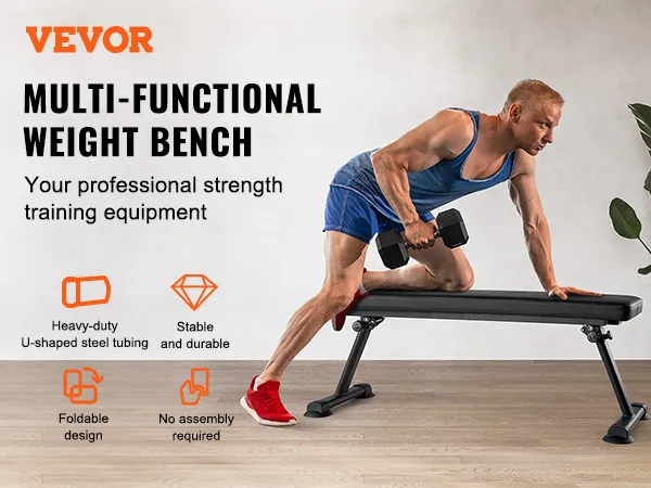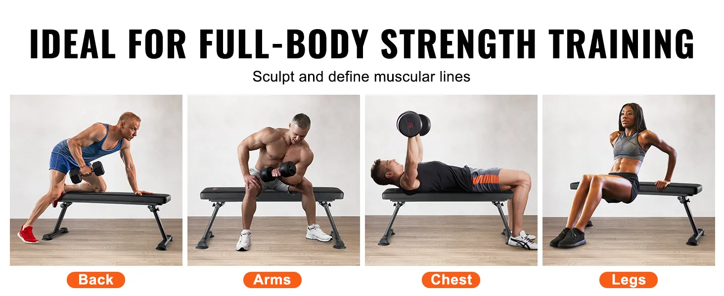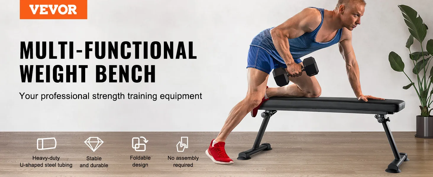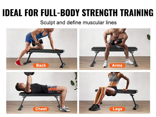VEVOR Flat Weight Bench, Foldable Strength Training Bench, Utility Workout Bench for Full Body Workout, 1000 LBS Press Bench for Home Gym Exercise, for Multi-Purpose Weight Training and Ab Exercises
