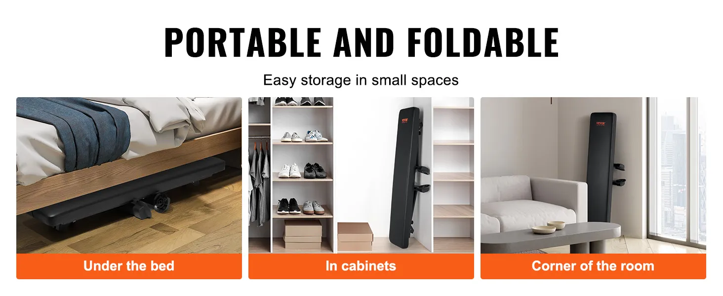 Foldable and Easy to Store: The portable foldable design allows you to easily store the strength training bench in any corner of your home when not in use, making it ideal for smaller apartments, offices, or home gyms.