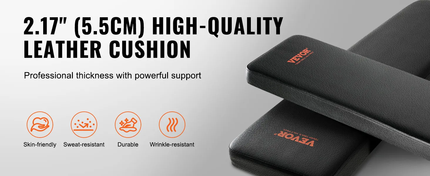 Designed for fitness, the thickened leather cushion provides effective pressure relief on your body during high-intensity training. The high-density leather surface is soft and comfortable, preventing skin irritation. This strength training bench is also sweat-resistant and anti-slip.