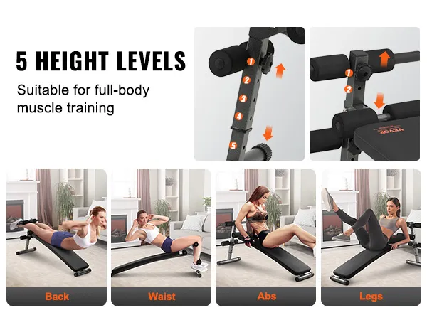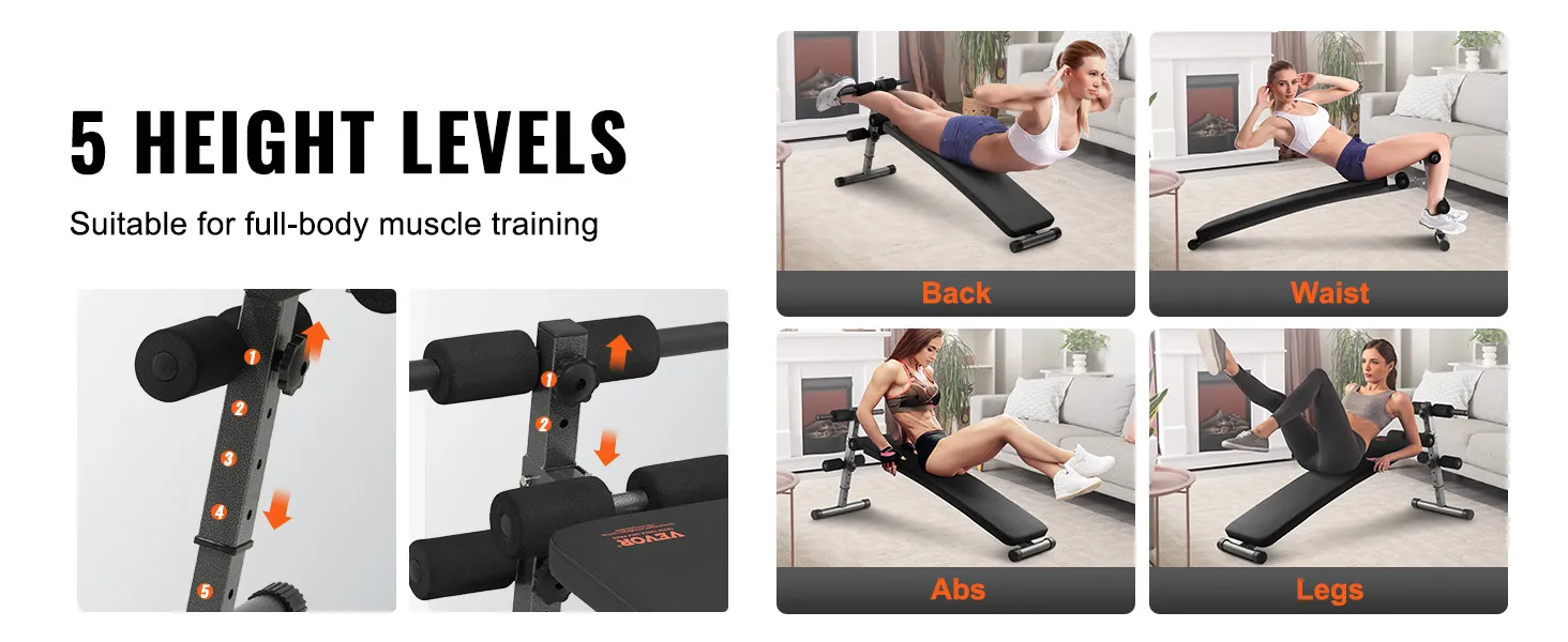 Adjustable Weight Bench: This weight bench features 5 adjustable height settings and 4 adjustable footrest positions, making it suitable for users of different heights and accommodating various muscle training exercises with different intensity levels. Whether you're doing sit-ups, crunches, bench presses, or leg raises, this bench is an excellent addition to your home gym, perfect for everyone from fitness beginners to seasoned pros!