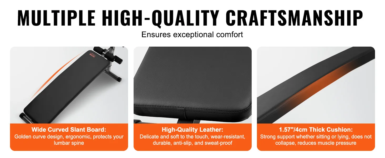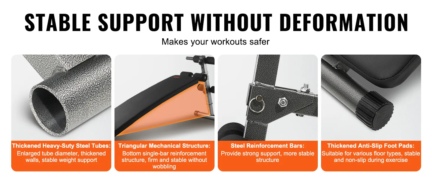 For a press sit up bench, superior load-bearing capacity and stability are essential. That's why we've upgraded both the materials and craftsmanship, using thicker heavy-duty steel tubing and multiple stabilizing designs to ensure your safety during workouts.