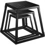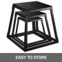 black VEVOR plyometric box set in different sizes, stacked neatly together.