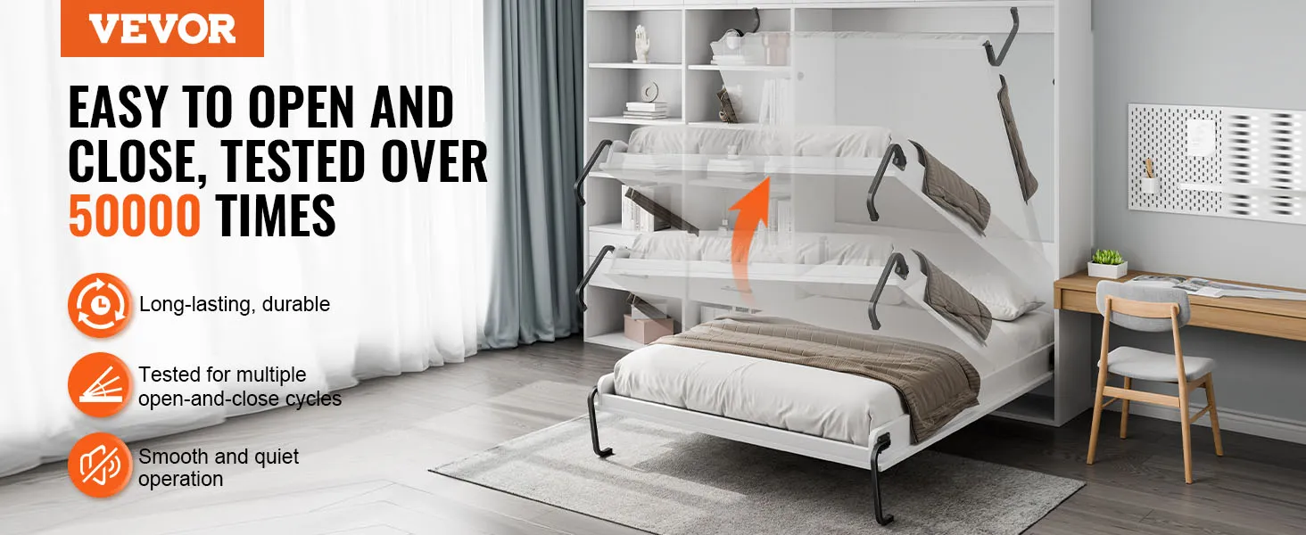 Dit bedhefmechanisme is voorzien van gasstangen van hoge kwaliteit die strenge tests hebben ondergaan tijdens het openen en sluiten, waardoor een lange levensduur en duurzaamheid zijn gegarandeerd.