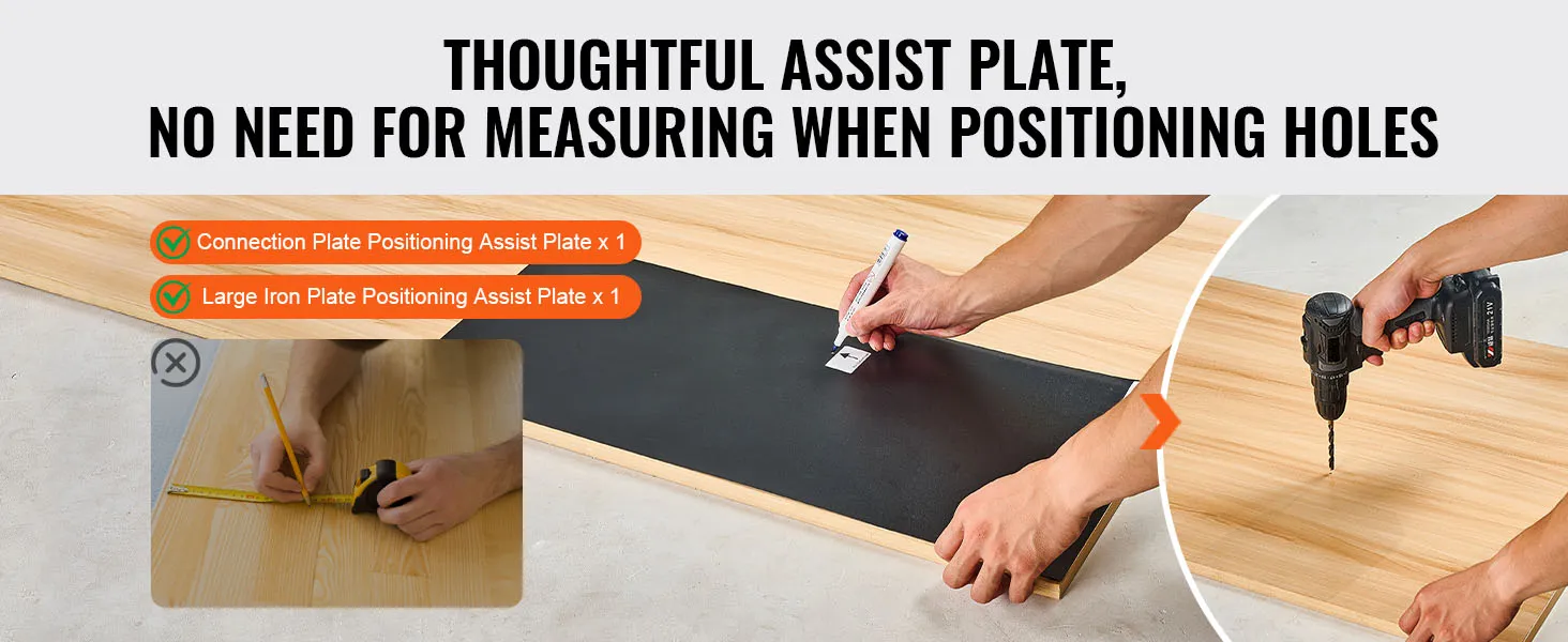 Accessoires zijn onder meer een hulpplaat voor het positioneren van de gaten voor de verbindingsplaat en een grote ijzeren plaat, waardoor het niet meer nodig is om te meten voordat u gaat boren.