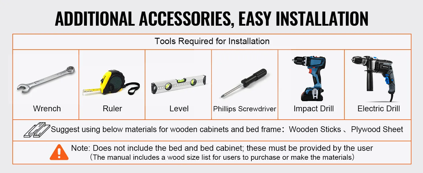 De bedliftset is een ruimteoplossing voor doe-het-zelvers en biedt ruime opbergruimte onder het bed om uw spullen op te ruimen - perfect voor gebruikers met beperkte woonruimte.